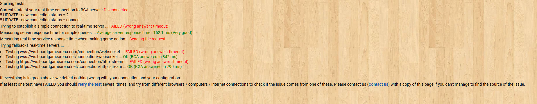 we are still working on that frustrating issue. We have deployed a fallback system to mitigate the issue for our users affected. So, any user affected by this should now be able to play baring a 5 seconds latency in the initial connection and when switching in and out from and to the game and main site pages.