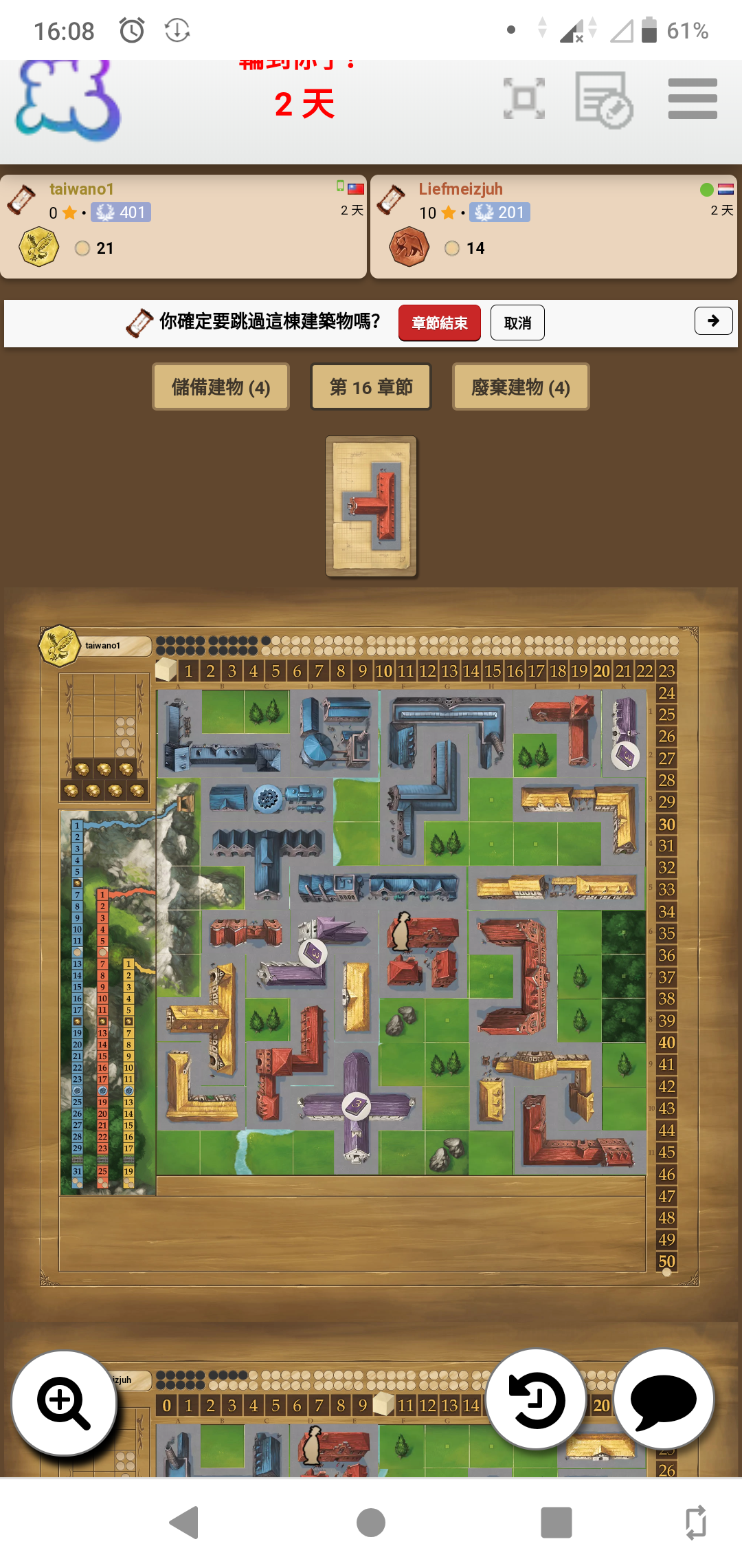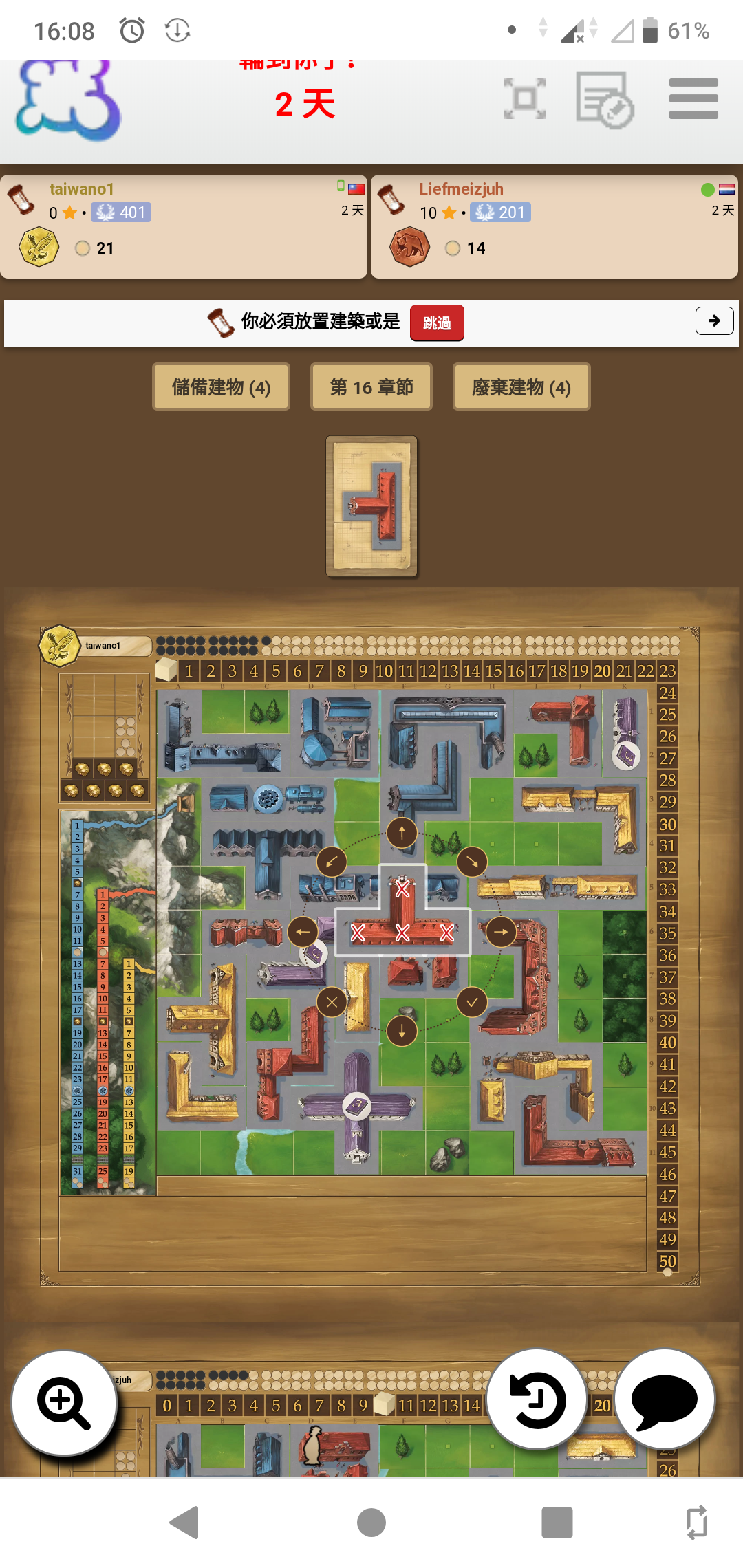 Chapter 21. I had the yellow 2x2 piece. I clicked the "x" on the piece to discard at which time I was only given the options of "pass" and "cancel". I have already discarded a different piece this round and took the -1 for the discard. I should be able to discard this piece for the penalty