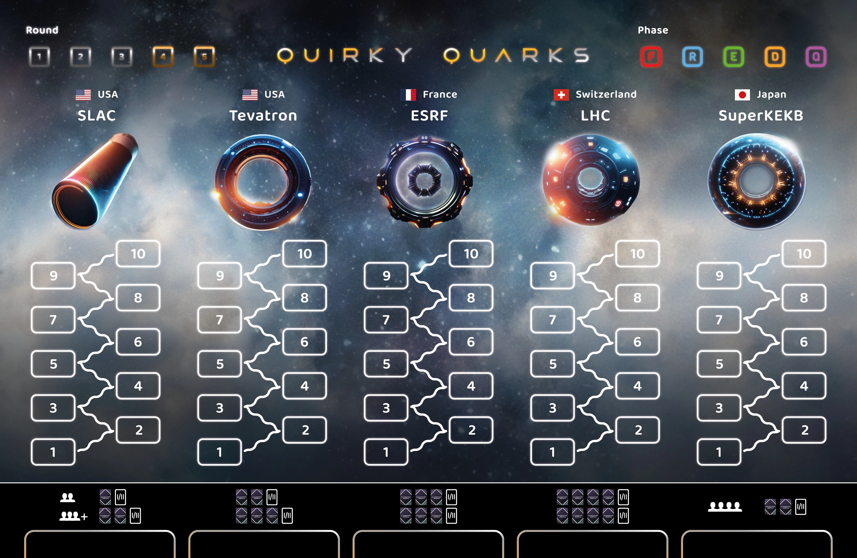 KeldeofusWe start the game with [blue]8 ev[/blue] ( money of the game ) and [blue]4 cards[/blue] ( 3 particles and 1 Quest I ). In the research phase, players bid on particle accelerators to claim cards. Here bid [red]one[/red] on LHC accelerator to claim [green]the cards[/green] under it. [img]https://x.boardgamearena.net/data/tutorials/img6785ed4fbc09b5.52868488.jpg[/img]7archivecontrol_editmode_centercomment010player_board_inner_FF0000 2